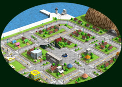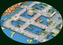 ●ブラチータウン● 中流階級の チョロQ達が住む街 赤い屋根の家が特徴! 自分のガレージもこの街に建っている 一番初めにいる街で、初期操作などを教えてくれる 親切な住民もいる。 |