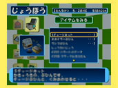 今回のチョロQでは、街の人からアイテムをもらえるぞ! パーツから、ストーリーに関係のあるものまで、 さまざまなものが用意してあるよ! いろんな人に話しかけて、たくさんもらおう! 集めた数だけ、楽しさもふくらむよ! |